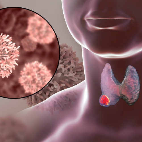 These develops in the thyroid gland, which is located in the neck and produces hormones that regulate metabolism.